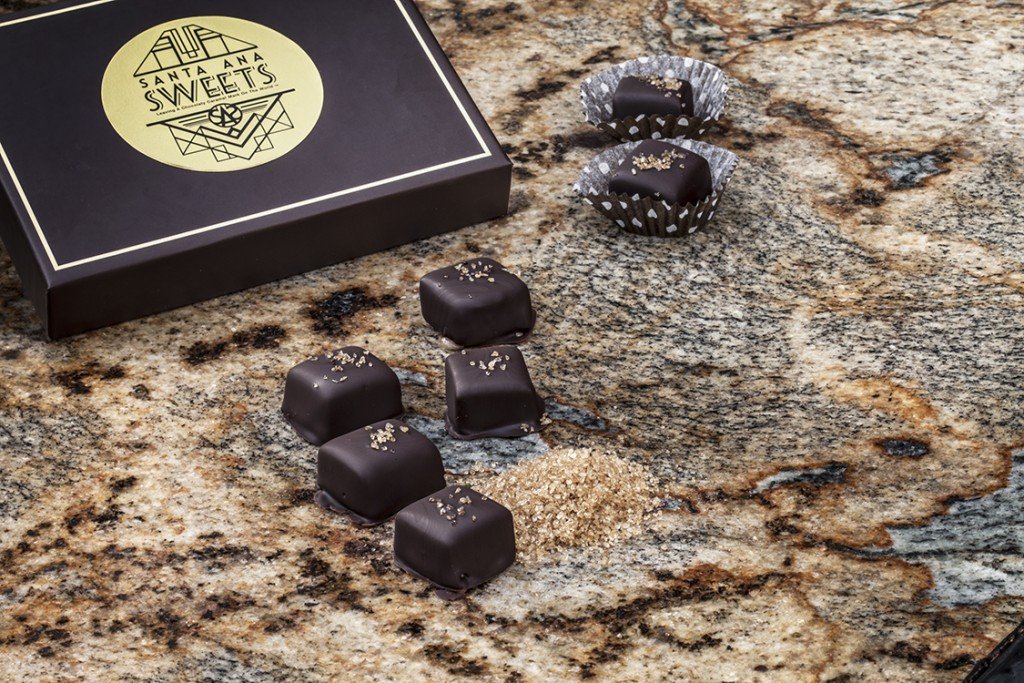 A Journey in Every Box. Inside this box is a trip to France, where Chef Rick fell in love with the traditional caramels he found there. Upon his return to California, he created this luxurious treat you are about to enjoy. These French inspired creamy caramels are blanketed in dark chocolate and adorned with sea salt. So velvety smooth, they melt in your mouth.